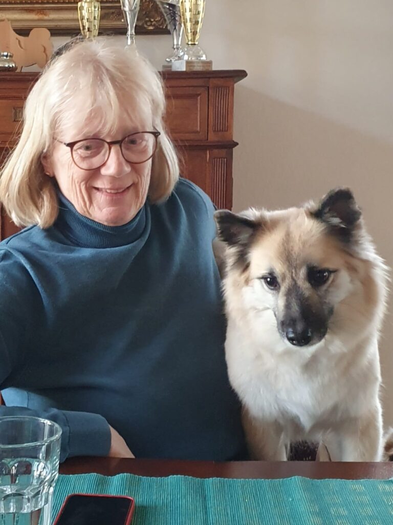 Angelika Mibach, eine Islandhunde Züchterin aus Deutschland, war auf der Durchreise und machte Station bei uns. Bei einem heißen Kaffee, Kuchen und Schnack haben wir die Zeit zusammen genossen und Úlfa hat es ausgenutzt, bei Angelika zu sitzen.